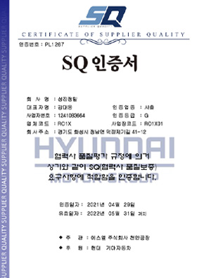 | 사출 SQ 인증 취득 (2021. 04. 29) | |